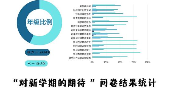 问卷调查结果显示,大部分新同学认为目前的学习环境、校园文化、课程设置等符合自己的预期。同时,新老同学都以饱满的热情积极面对新学期的新挑战,合理规划时间,调整学习方法,改变学习态度,提升学习动力,争取在新学期获得新成绩。